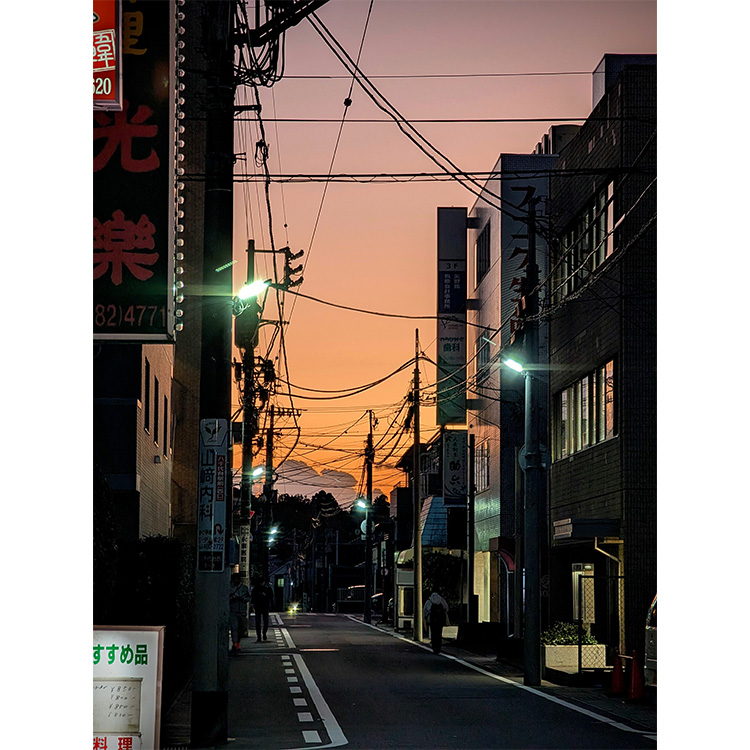 八千代台の西仲通りで撮影した夕暮れの街並みです。夕焼けの空と街灯の光が交わり、静かな住宅街が温かく照らされていました。日常の中の穏やかな一瞬を記録したくて撮影しました。