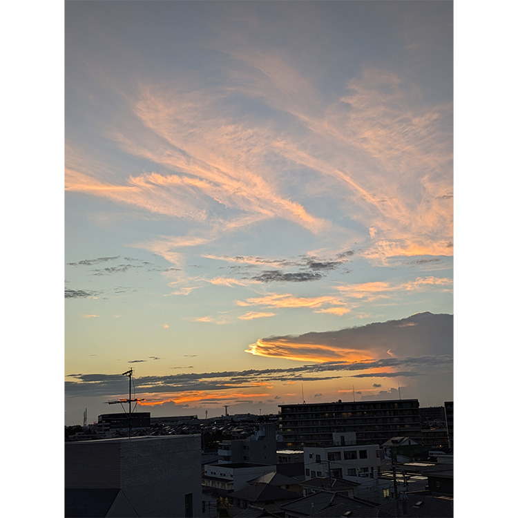 これはたまたま家に早く着いた日に、夕方きれいな空が見えたので思わず写真を撮りました。